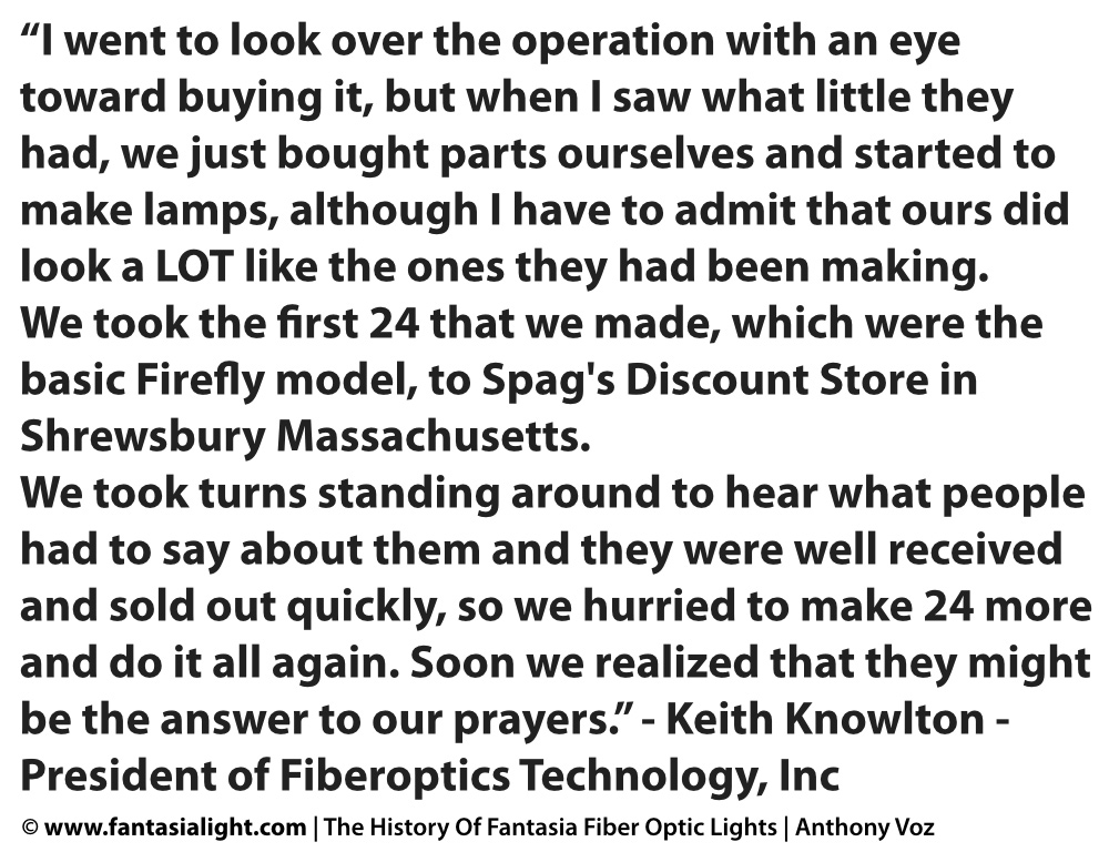 Kind Words, Origins of Fantasia and Introduction from Keith Knowlton - President of Fiberoptics Technology, Inc.